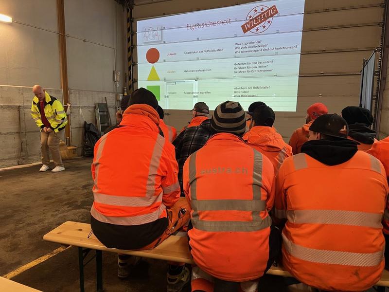 Zu Jahresbeginn haben wir wieder unseren Sicherheitsparcours durchgeführt. In diesem Jahr lag der Fokus auf: • Brandschutz auf Baustellen & Erste Hilfe • Ladungssicherung und Anheben von unförmigen Lasten • Lehren aus Unfällen und Beinahe-Unfällen Ein grosses Dankeschön an alle Teilnehmer! Gemeinsam machen wir unsere Arbeitsplätze sicherer! Wir wünschen allen ein erfolgreiches und unfallfreies Jahr!